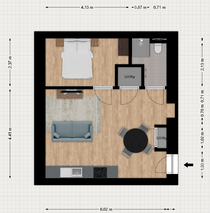 The garden room apartments are equipped with energy label A and are very energy efficient and sustainable.